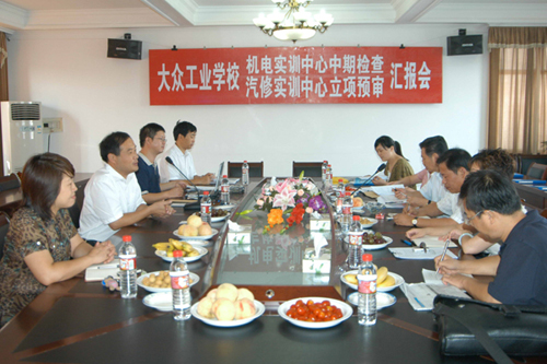 装备部主任助理、职教管理科科长周齐佩,专家组成员、原城建学校冯校长等对我校提出的,在汽修实训中心建设中要创出大众工业学校的特色的一些设想表示充分肯定,她们就实训中心的设备配置、环境设计、运行机制等环节提出了优化措施和建议。专家组成员,现代职校陈校长对我校机电实训中心建设给予了较高的评价,认为建设项目的各项工作做得很好。
