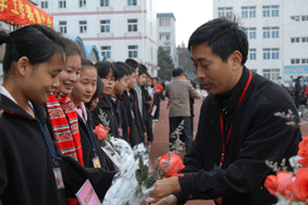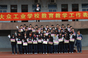 2007年11月27日上午大众工业学校全体师生隆重集会,表彰在本学期期中考试中获得一、二、三等奖的学生。在升旗仪式以后,高明副校长主持了颁奖仪式。