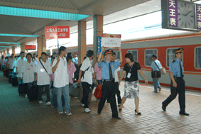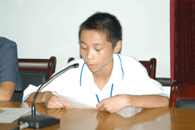 从都江堰聚源中学废墟爬出来的何棋同学,现在是大众工业学校电气专业08级的一名新生。虽然身上还带着地震的伤痛,左小腿还打着钢钉支架,但这个身材瘦小却又无比坚强的孩子拒绝了别人的搀扶,自己扛着行李,一步不落地跟着大部队来到学校。在欢迎仪式上,他代表全体都江堰的同学感谢党和政府对灾区学生的关怀,表示一定要努力学习,学好本领,参与家乡的重建和发展,把家乡建设得更加美好。
