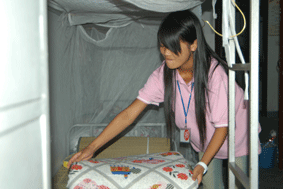 区教育局、学校领导和各专业教学部主任、德育主任都已早早等候在校门口,热情欢迎同学们的到来。一下车,首先映入同学们眼帘的是“情系四川,爱满大众。”“热烈欢迎都江堰同学来我校学习”的标语。俞勇彪副局长代表嘉定区教育系统向同学们表示衷心的慰问和热烈的欢迎。他希望同学们放心、安心地在校学习,要求学校为同学们创造良好的学习和生活环境。随后同学们来到了食堂,工作人员早就为他们准备好了可口的饭菜和川式辣椒酱,他们疲惫的脸上露出了微笑。午餐过后,在教学部主任、班主任的带领下,同学们来到了各自的寝室。按学校安排,都江堰的同学与其他地区的同学混班、混住。同宿舍的同学们把最后的铺位留给都江堰的同学们,并热情地帮助他们整理床铺和生活用品。