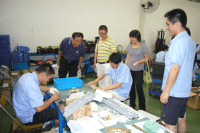 8月19日上午,上海市大众工业学校党总支书记高康校长、高明、梁桦副校长一行4人,来到上海市天灵开关厂,看望在该厂参加暑期教师下厂实训的教师。