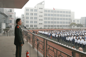 首先,在升旗仪式上,由我校法制副校长沈燕忠警官以“创建平安和谐校园”为题,为全校师生做了重要讲话。沈警官指出,消防日创建的是“生命至上,平安和谐”的理念。119这个数字使我们想起了火警电话,也使我们想起了熊熊烈火、滚滚浓烟的火灾现场,每天发生在全国各地的火灾都是一场场悲剧,那是惨不忍睹的人间地狱。在现实生活中,火灾已经成为威胁公共安全、危害人民生命财产最严重的多发性灾害事故,希望藉此消防演练活动能让师生们掌握一些基本的消防知识,更主要的是让我们大家增强消防意识,做到预防为主,远离火灾的危险。