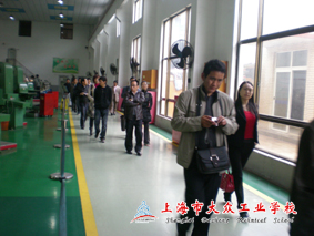 研修班一行在办公室副主任王亚莉老师的陪同下参观了学校实训中心。王老师向来宾们简要介绍了实训中心的配置和管理、“双师型”教师队伍建设以及学校的运转情况。在机电实训中心和数控实训中心,当来宾们看到学校与摩森精密机床有限公司、上海巴伐利亚咨询有限公司的合作项目时,详细询问了学校开展校企合作的情况。随后领导们来到了电气实训中心的柔性制造系统实训室、焊接实训车间和在建汽修实训车间。在参观过程中,来宾们详细询问了学校的总体发展思路和学生培养目标以及就业推荐形势,客人们感叹一所中专学校有如此良好的实训基地确实是非常少见,对实训中心完备的设施、严格的管理表示了赞赏。