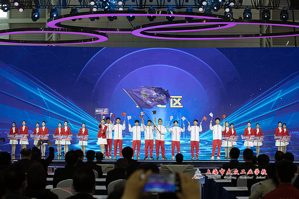 毕业留校后的张容志以教师身份参加此次大赛工业机械项目(世赛选拔)的比赛,并作为选手代表在上海市第一届职业技能大赛开幕式上发言。他洪亮的声音、铿锵有力的宣誓,气场全开、震撼全场,展示了大众教师不惧挑战的底气、勇毅前行的决心。