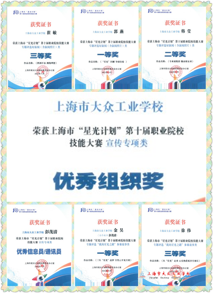 为提升“星光计划”宣传效能,上海市星光计划组委会组织开展上海市“星光计划”第十届职业院校技能大赛宣传工作专题评选。现评选结果公布,上海市大众工业学校蝉联“优秀组织奖”,将16项获奖/荣誉收入囊中。其中,彭茂清、焦艳珍老师获“优秀通讯员/信息员”,好新闻(含新闻照片)评选中焦艳珍、韩莹、郭燕、崔敏、周倩倩老师获一二三等奖共8个,李君老师在“技动一刻”短视频评选中斩获一二三等奖共4个,徐伟(现代)教师、学生金昊在“我的星光之路”参赛故事评选中获奖!