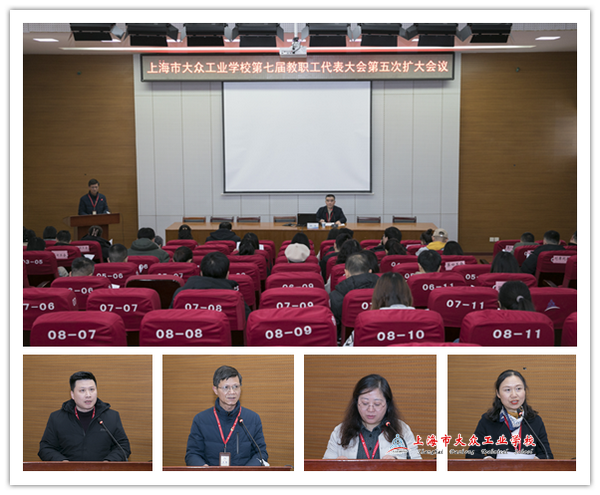 12月20日,上海市大众工业学校在阶梯教室召开第七届教代会第五次扩大会议。会上党政正副职领导述职述廉,教代会代表进行民主测评。校工会主席徐剑主持会议。