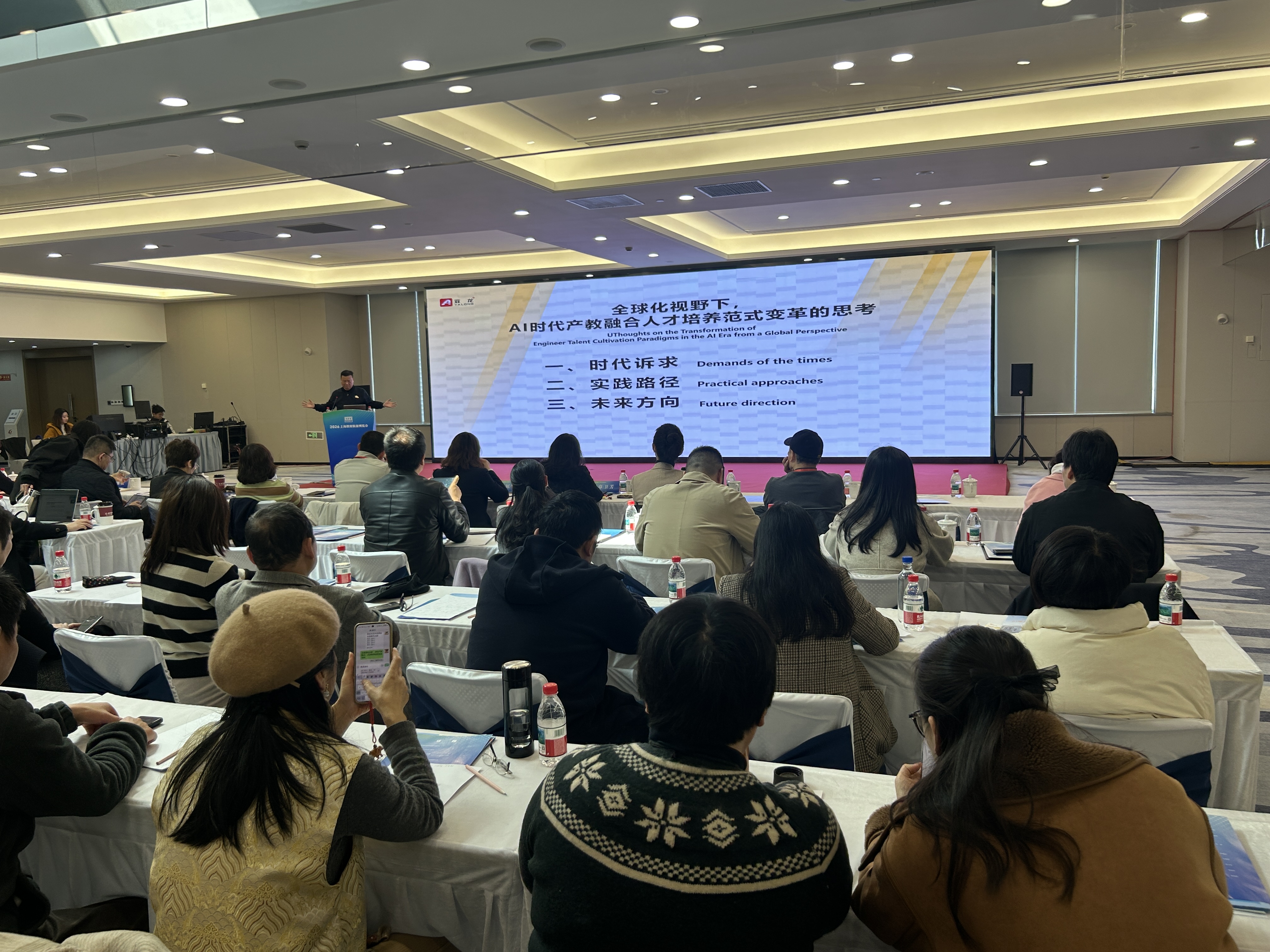 企业实践环节中,亚龙智能装备集团股份有限公司董事长陈继权从全球化视野出发,探讨了AI时代产教融合人才培养方式的变革方向;晶程甲宇科技(上海)有限公司总经理赵晨伊则聚焦AI融合的项目化教学,分享了企业在产教融合中参与教学实践的探索与成果,其成果实现了院校需求与企业资源的精准对接,为校企协同培养数智化职业人才提供了新思路。