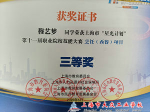 近日,上海市“星光计划”第十一届职业院校技能大赛圆满落幕。经济管理系学生凭借扎实的专业技能和出色的赛场表现,在烹饪类赛项中斩获佳绩,共获得一等奖1项、三等奖5项,充分展现了经济管理系学生“精技强能、追求卓越”的精神风貌。