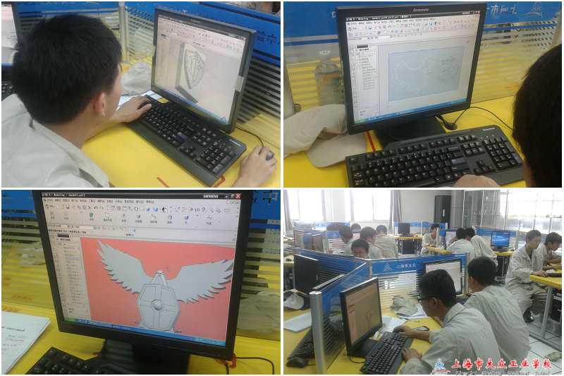 本次参赛作品必须是通过自己手工编程完成的(或借助于CAM软件平台创作的),两位老师从设备型号,刀具规格,加工材料等各方面为比赛做好充分准备。通过老师耐心的指导和参赛同学们的刻度训练,经过两个礼拜的急训已经看到他们可以很娴熟地运用CAD/CAM——UG软件,将老师给予的启发和自己的创新理念融合在自己的作品中,看到他们将带有中国特色和民族气息的中国龙、奖杯、中国地图、中国剑等作品已初具雏形。