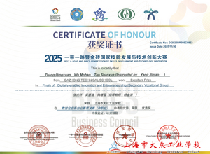 近日,2025一带一路暨金砖国家技能发展与技术创新大赛数智化创新创业赛项决赛圆满落幕。上海市大众工业学校信息工程系张庆轩、吴墨涵、陶珊雪三位同学组成的参赛团队,在指导教师杨金涛的悉心指导下,凭借扎实的专业功底和出色的实战能力,在激烈角逐中表现优异,成功斩获优秀奖,为学校赢得了荣誉。