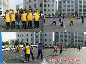 2013年11月的天气略带着深秋的凉爽,操场上球员们用激情勾勒出机电教学部130703班“顽强拼搏、勇于进取”的精神风貌。也是在拉拉队的加油呐喊中,上海市大众工业学校13届学生“新生杯”篮球决赛鸣哨开赛。