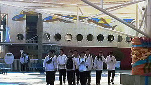 上午9点多钟,上海市大众工业学校的师生们顺利到达了欢乐谷,排队进入园区后同学们便急不可耐地三五成群,结伴四处游玩去了。9点多钟对欢乐谷来说还是“清早”,整个欢乐谷园区里还很清静,没什么游客,各种游乐设施基本都要到十点半或十一点钟才开始开放,连餐饮小店都还没开张。同学们乘着这个空闲正好在园区里到处走走,看看,把整个园区先逛一圈,侦查好各个游乐项目的位置,制定好游玩目标,盘算着要争分夺秒地把心目中的目标一个个拿下来,好好玩一把。