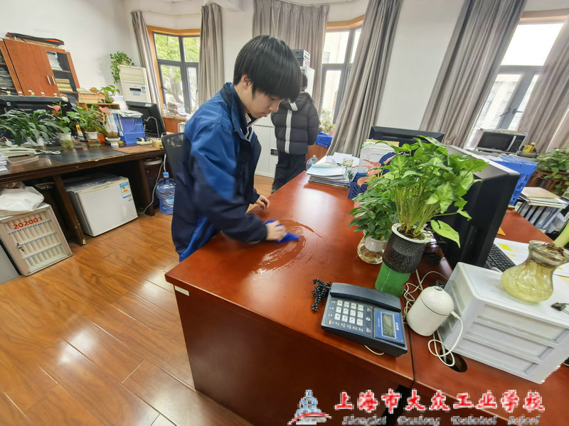 活动期间,学生们热情高涨、干劲十足,在老师的带领下,分成若干志愿小组,有序奔赴各个服务区域,开展全方位清洁工作。在实训室里,学生们分工协作、默契配合,有的仔细擦拭实训设备、操作台和门窗玻璃,清除设备表面的灰尘和污渍,整理实训工具和耗材,将杂乱的实训物品摆放整齐,不放过任何一个卫生死角,全力为师生营造整洁、安全的实训环境,让专业实训场地焕发新颜;在会议室,大家认真清扫地面、擦拭桌椅,整理会议资料,清洁墙面污渍,让会议室变得干净整洁、井然有序,为师生开展会议、交流研讨提供了舒适的环境;在校园公共区域,同学们手持清洁工具,沿着校园主干道、绿化带、走廊楼道等区域,弯腰捡拾纸屑、塑料袋、烟头,清理墙角的杂物和积尘,擦拭宣传栏、指示牌,用双手擦亮校园“颜值”,用行动守护共同的校园家园。