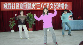 3月9日,我校部分03级学生与秋霞居委在嘉定镇卫生防疫站举办了“喜迎F1,暨庆祝三八妇女节”联欢活动。同学们在联欢会上表演的精彩节目把整个活动推向了高潮,受到了在场所有人的一致好评。不仅展示了青年学生朝气蓬勃、积极向上的精神风貌,同时也体现了我校学生良好的自身素质。