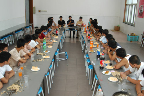 茶话会结束后,师生们一起共聚中餐,享受学校为他们精心准备的饭菜和水饺。在享受美味的同时,学生们为了感谢学校对他们的关爱,都踊跃上台即兴表演节目,歌声、喝彩声在餐厅内不断回荡,把整个活动推向了高潮。