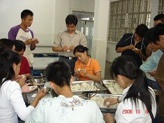 10月6日是中国传统的节日——中秋节,为了让留在学校的80多名外地学生同样感受到家的温暖,由学生处、团委牵头,在学校食堂、有关教学部的大力配合下,10月6日下午学校专门组织了中秋座谈会和中秋会餐,并为同学们准备了月饼、水果、糖果、饮料等食品。80多名学生和机电教学部、数控教学部、大专教学部、团委、学生处的老师围成一个圈,大家边吃边谈,中间穿插了师生的表演。在一个多小时的座谈会上,不少同学对学校的关心表达了深深的谢意,并表示不辜负家长、老师、学校对他们的厚望。