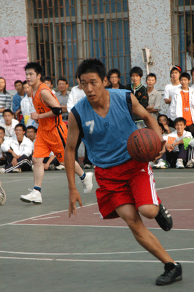 10月24日下午,在我校篮球场上一场精彩的比赛吸引了许多师生驻足观看,两个身材高大的老外更是显眼。这是马陆荣创公司篮球队与我校师生联队进行的一场友谊比赛。