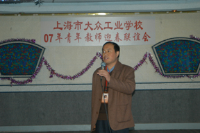 2007年1月24日下午13:30在技校部4楼会议室举行了上海市大众工业学校07年青年教师联谊会活动。会议由学校教工团委发起组织,高康校长、周超颖副书记、高明副校长、陆浩勤副校长、全体教工团员、各个教学部团工作负责老师、全体06年新引进教师、嘉定区青年岗位能手卢红老师参加了这次活动。活动开始,高康校长发表了热情洋溢的讲话,对全体青年教师提出了工作和生活中的几点要求和希望,鼓励全体青年教师在新的一年中,踏实敬业,以满腔的热情为实现“建精品专业,创品牌学校,争全国示范”的十一五目标贡献自己的青春和才华,同时表达了对全体青年教师新年的问候。教工团员代表、教学部团工作负责老师代表、新教师代表、周超颖副书记、高明副校长也在这次活动上做了生动热情的发言,活动安排了集体游戏、歌舞、猜谜、摸奖等形式丰富的项目,最后在一片青春朝气的氛围中结束。这次青年教师联谊会活动不但增进了各个部门青年教师之间的交流,更加增进了大家之间的团结和凝聚力,青年教师们都有志在今后的工作中积极发挥出青年教师的作用,把工作做的更好!