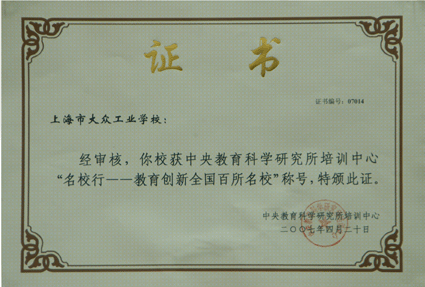 会上,中央职业教育研究所培训中心马红霞女士向高康校长颁发了“名校行——教育创新全国百所名校“证书。