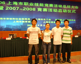 5月23日,由上海市劳动和社会保障局、市总工会、团市委、市教委、市信息化委员会等单位联合举办的“2006上海市职业技能竞赛活动总结大会暨2007-2008上海市职业技能竞赛活动启动仪式”在市劳动和社会保障局举行。大众工业学校获得市级一类竞赛团体铜奖,是本次比赛中唯一获得团体奖项的中职类学校。张林获数控机床工(铣床)(三级)一等奖,胡洁琴获三等奖;胡辉获数控机床工(加工中心)(三级)二等奖;黄铧获数控机床工(车工)(三级)二等奖;王文强获数控机床工(车工)(二级)三等奖。学校数控办学部潘品方主任和四名获奖选手出席大会并领取了奖牌。