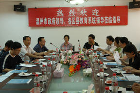 6月27日,由温州市教育局副局长吴恕成率领的温州市政府和各区县教育分管领导代表团一行32人,来到大众工业学校进行参观访问。嘉定区副区长夏以群、区教育局副局长俞勇彪到校亲切接见了温州客人。