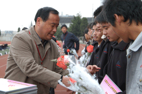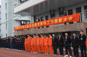 2007年11月27日上午大众工业学校全体师生隆重集会,表彰在本学期期中考试中获得一、二、三等奖的学生。在升旗仪式以后,高明副校长主持了颁奖仪式。