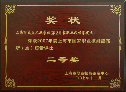 日前,上海市大众工业学校第2国家职业技能鉴定所在上海市职业技能鉴定站(所)质量评比中荣获二等奖。