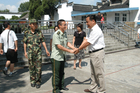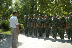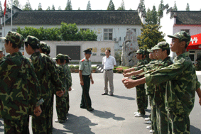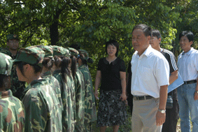2008年8月9日上午,大众工业学校领导班子一行6人在高康校长的带领下,来到浏河营地、太仓基地看望冒着烈日坚持军训的同学们。