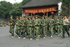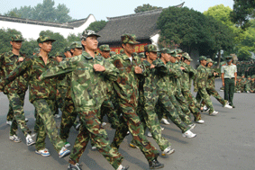训练场上,学生们统一穿着迷彩服,投入了严格的训练。他们身处毫无遮掩的训练场,头顶炎炎烈日,耳听声声号令,不断重复着各种简单而枯燥的步伐和动作。有的同学顶不住烈日的炙烤,中暑晕倒了;有的同学先天哮喘坚持参加军训,有的吐了一次又一次,毫无怨言;有的班级上演感人一幕:一杯水从第一个传到了最后一个……,同学们一扫往日的娇气,挺过了高温的考验和高强度的训练。在教官们的指导下,同学们学习了简单的基本军姿训练,立正,稍息,向左转,向右转,正步走等,又学习了军歌和参加了国防知识讲座。对于新生来说,是苦,是累,但他们没有退缩,他们坦然面对了血与汗的洗礼,留下的将是他们一生受之不尽的自信、坚强和毅力;留下的将是中专生活难以忘怀的经历和记忆。通过军训,同学们不仅学到基本的国防知识,还可学习到人民解放军艰苦奋斗、吃苦耐劳,爱国奉献、勇于牺牲,勇敢顽强、坚忍不拔的优良传统。这些都十分有利于同学们在今后的学习和生活中培养爱国主义、集体主义精神;有利于同学们增强国防观念;有利于磨练同学们的意志品质,培养艰苦奋斗、吃苦耐劳的作风,增强战胜困难的信心和勇气;有利于同学们组织性、纪律性的提高和身体素质的增强,从而为将来建设祖国、保卫祖国打下坚实的基础。