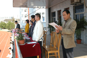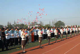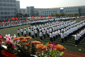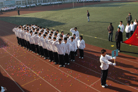 全体学生以饱满的激情,昂扬的斗志,参加了入场式比赛。伴随着雄壮的《运动员进行曲》,在国旗、校旗、校标、红旗队的引领下来自各教学部的74个班级的学生雄赳赳、气昂昂地步入会场,并在主席台前进行了形式不一,丰富多彩的表演。在整齐、规范、气势恢宏的入场式后校党总支书记、校长高康代表学校领导讲话,他指出:运动会与入场式比赛是一次团结、友谊、拼搏、进取的盛会, “生命在于运动”,体育运动所呈现的更高、更快、更强的精神深入人心,催人奋进。如今时代在进步,社会在发展,现代的人才观,不仅要求建设者要有较高水平的专业知识、实践能力和创新精神,还要求有健全的人格、健壮的身体、健康的心理。