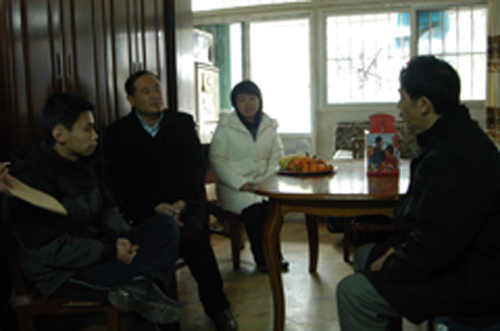 学校领导为经济困难的学生家庭送上学校的关怀的同时送上了慰问金和慰问物品。