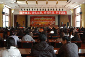 周超颖副书记带领全体教职工认真学习了温家宝总理在制订《国家中长期教育改革与发展纲要》会议上的讲话摘要,就学校新学期工作思路中贯彻讲话中“大力发展职业教育,既是经济发展的需要,也是促进社会公平的需要。”“职业教育是面向人人的教育,是面向整个社会的教育”精神进行了阐述。