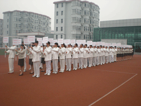 志愿者的名单一经确定,团委就按照岗位要求进行分组,随后在相关负责老师的带领下,进行了紧张而有序的训练。开幕式的前两个星期中,在校园中经常可以看到志愿者训练的身影。他们在指导老师的带领下,一遍又一遍的熟悉赛场地点、熟悉路线;为了能整齐划一的举好牌子,老师们更是以奥运会礼仪小姐的举牌手势来训练志愿者;为了训练挺拔的站姿,一动不动一站就是半个多小时,在上星期四的彩排中,主会场的学生观众配合彩排训练了3个多小时,0801班全体女生以及数控教学部的部分女生,穿着高跟鞋,也硬是坚持了下来,尽管很累,脚很痛,但是却没有一个同学提出来说要退出。