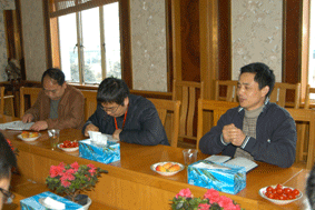 李亚东副院长和查正和主任首先听取了高康校长对学校开展实践科学发展观活动的汇报,随后重点听取校级领导、教研、教务、学生、校办等各个条线的教师对“评估在职业教育内涵发展中的作用”、“目前职教发展最需解决的问题有哪些”等问题的意见和建议。