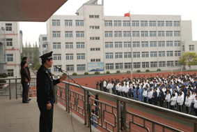 沈燕忠同志是于4月13日上午来学校警务室工作的,沈警官到校后马上投入紧张的工作之中,今天上午利用升旗仪式,已向全体师生作了简短的讲话。
