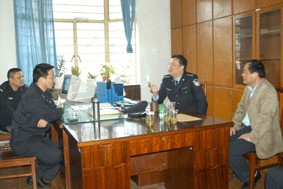 4月14日上午,嘉定区公安分局孟民副局长、嘉定公安分局治安支队陈军副支队长、菊园警署唐剑锋所长、汪建钢副所长一行六人来到大众工业学校指导工作,孟副局长在高康校长、陆浩勤副校长的陪同下,察看了实训中心、学生寝室等场所,最后来到了新成立的学校警务室,看望了嘉定公安分局派驻到学校警务室工作的法制副校长、警官沈燕忠同志。孟副局长说,上海市大众工业学校警务室是嘉定公安分局大走访后为加强警校联系开展的一个试点,作为全市的试点工作,学校警务室得到了公安系统、学校及社会各界高度的关注,因此,此项工作意义深远,对到校开展工作的沈燕忠同志来说,责任重大。孟副局长对学校警务室的工作提出如下的要求: