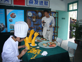 学校展出了近年获得的市级以上奖状和奖杯、具有各专业特色的学生实训作品、学生社团活动展板和绘画、竹刻、陶艺等作品。许多家长和学生来到大众工业学校展示厅,围着咨询人员仔细询问,索要宣传资料。其中招生政策、资助政策、三校生高考、毕业生就业去向等问题是关注的焦点。在展示现场,我校烹饪专业的学生当场进行食品雕刻表演和冷盆展示,吸引了学生和家长的极大兴趣,纷纷驻足观看,拍照留念。
