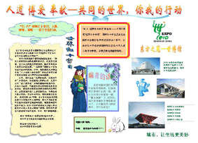 为纪念第62个“五八”世界红十字日,大力宏扬“人道、博爱、奉献”的红十字精神,并使学生能了解世博、参与世博,营造和谐、积极的校园氛围,学生处、校团委、校红十字会日前联合举办“凝聚人道力量 同迎世博 共创和谐校园” 电脑小报展评活动,目前已收到电脑小报30余份,现将部分作品予以展示,希望各班踊跃参加,活动初定本周三截止。