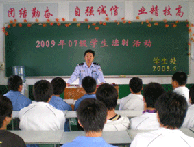 在活动召开前,沈警官就对参加活动同学进行过调查,大概掌握了出席学生的相关资料。因此,会议一开始,沈警官就认出了某些同学,并说出了这位同学的优点和缺点,吸引了学生们的注意力。沈警官指出,青少年在校的行为偏差,走到社会上就是违法犯罪。青少年在心理上存在易冲动、抵制诱惑能力差、盲目将义气、不够成熟等缺点。接下来,沈警官分析了两个案例,两个案例都从侧面说明了,青少年犯罪存在临时性的特点。青少年在犯罪之前,根本没有犯罪的念头,但抵不住诱惑,一时冲动,一念之差铸成大错。沈警官提醒同学们,青少年犯罪以预防为主,在平时就应改正自己的行为偏差。