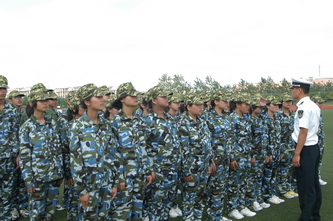 经过了两天的烈日炙烤,今天天气来了个180度的转变。天阴沉沉的,时不时的还飘着小雨,而且风很大,虽然学生穿着较后的军装,但是还是有不少学生因为不能适应天气的急剧变化而感到身体的不适应。绝大部分同学还是能咬牙在寒风细雨中刻苦训练。