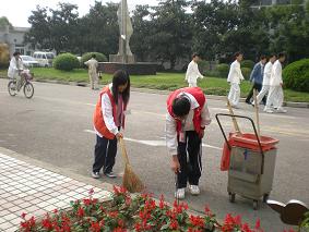 2009年第一学期开始,大众工业学校为深入响应上海市迎世博600天行动社会动员指挥办公室《关于在世博倒计时一周年开展“我微笑 我捡起”志愿者大行动的通知》及市教委“百万学生千支队、清洁城市我行动”的志原者活动,自发组成了一支志愿者队伍,对教室环境、楼道环境、街道环境进行集中清洁。每天上午8时,学生们穿好志愿者红马甲、带着扫把和垃圾车,集中在校门口,等老师告知清扫、清运要领后开始清扫。学生分为两队,一队负责学校楼道、校园等地方的环境,另一队同学则由老师带领到学校门前的环城路进行清扫。在三个多小时的清扫活动中,志愿者们每隔半小时进行一次检查,发现垃圾及时处理。同学们一丝不苟地打扫着每一个角落。第一次参加社会公益活动的志愿者们,扫地姿势看上去略有点生疏和笨拙,但都觉得自己付出的劳动换来环境的整洁是非常值得的。