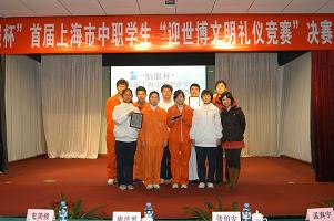 为了开展中职学校的文明礼仪迎世博活动,在中职校园中倡导文明礼仪、绿色生活,“上海市中职德育研究会”承办了“航服杯”上海市中职学生迎世博文明礼仪竞赛活动。大众工业学校团委和学生处组织学生,先在校内展开迎世博系列活动的“学世博知识 迎世博盛会”知识竞赛,通过必答题、抢答题、风险题三个环节进行角逐。在每轮结束后,为了让更多的同学参与其中,还设置了许多观众题,台下的同学踊跃参与答题,现场气氛非常活跃。通过初赛、复赛选出了精兵强将。参加“上海市中职德育研究会”在全市范围内举办的“航服杯”上海市中职学生迎世博文明礼仪竞赛活动的六支队伍分别由各教学部选派的3名同学组成。