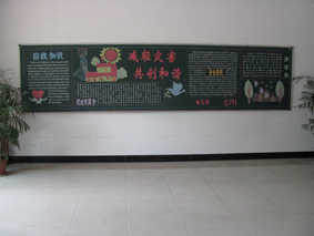 3.通过展示,激发自豪感,树立自信心。团委每学期末时,会在每期的优秀的黑板报中再挑选出一些无论是在排版、色彩、创意方面堪称精品黑板报的照片并打印,制作一期宣传版面在学校的橱窗栏里展出。能在学校里展出,学生都引以为豪,同时,也坚定了学生出好黑板报的信心。