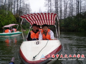 4月1日,08级学生来到了滨江森林公园,它临江靠海,汇聚了黄浦江、长江、东海“三水并流”的灵气;曾经是“储绿”的三岔港苗圃。俗话说的好,清明时节雨纷纷,也正应了这句话。清明节未到,天空就飘起了细雨,但同学的热情丝毫没有被这细雨所掩盖。滨江公园是以自然、生态、野趣为设计理念,园内亭台、栈道、林木互相错落,曲径通幽、湖水清澈、环境优美。一进园门,同学们就看到了有租借自行车,他们一边骑,还不忘一边看两旁的野花。虽然是野花,但是品种各式各样,有黄灿灿的油菜花、有红如胭脂的山茶花、有争芳斗艳的海棠花……连成一片,姹紫嫣红,绚丽多姿,艳丽夺目,简直成了花的海洋。他们穿梭在这千姿百态的花朵中,真是其乐融融。有的学生来到江边,好不壮观!心胸仿佛开阔许多!他们围着江边绕了一圈,看着江里的船只航行,时而听到拉响的汽笛声。有的同学则三三两两的走在林荫小道上感受着大自然的气息。还有的学生玩起了电动船,一个同学负责电动船的驾驶员,别的同学则充当起了指挥员的岗位,驾驶员在水上被呼来唤去,玩的不亦乐乎。