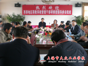 在参观结束后,来宾们与学校领导进行了座谈。陆浩勤副校长以德育管理为中心和来宾们进行了交流。大众工业学校“学会做人、学会做事” 的教育宗旨、职业教育为地方经济和企业服务的理念,以及德育管理管理模式和实训中心建设管理的经验,都给西部地区职业教育管理干部研修班留下了深刻的印象,他们觉得很值得借鉴和学习,确实不虚此行,希望进一步加强交流与合作,促进大家的共同进步与发展。