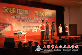 回想历程,从初赛到决赛,真可谓是一波三折。记得初赛前的3天,队中一名学生因故不能参加比赛,这给我们出了不小难题。说时迟那时快,当即果断重新挑选,通过师生的共同努力,总算选到了符合角色需要的学生。但摆在面前的是,如何让这名学生迅速融入戏里。通过