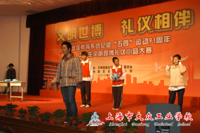 “台上一分钟,台下十年功!”看似短短6分钟的情景表演,展示了大众工业学校学子良好的综合素质和专业素养。0896班的姜海洋、0991班的柏琼侃、0901班的陈思维、09理强1班的顾俊杰以及0832班的陈一鸣,他们此时此刻成了学校的“小明星”。他们闪耀在舞台上,更闪耀在大众工业学校……