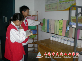 葛燕萍、陈爱娣两位老师作为劳动周的管理人员,按照张忠明老师的部署,安排保洁区的学生打扫每天至少早、中、晚三次的校园环境的清扫,要求学生们所管辖的各区域杜绝有纸屑、果皮、杂物、杂草、枯枝落叶等。对于打扫厕所卫生的同学,陈老师要求厕所间保持无臭味、无蚊蝇滋生、无乱写乱画、无尿渍黄斑、墙壁地面干燥清洁,每天打扫卫生的时候要开窗通风,洗手池清洁卫生、配备洗手液,日常可用樟丸、卫生香驱除臭味,劳动工具摆放有序。葛老师每周要安排10名左右劳动周学生,组成“校园督查队”,对班级卫生、寝室内务整理、食堂用餐情况等进行检查打分,各项检查结果全部进入文明班级考核分值,次日早上在文明班级考核栏上公布。食堂的用餐工作一直是我校劳动周管理的一大亮点,每天20几名同学要进行端饭菜、放好筷子、饭勺和汤碗,学生用餐时要回收饭盖,学生用餐完毕后,劳动周的同学进行擦清油污,不留痕迹,排齐桌椅。先扫后拖,保持地面整洁,无积水、无油污。在同学们就餐时,发现浪费糟蹋饭菜、随地吐痰、乱扔纸屑等不良行为的,督察队员有权批评指正,可提出整改意见和适当扣分。