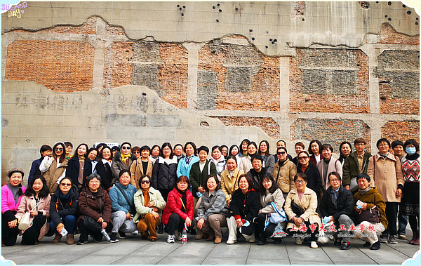 这一站致敬先烈!女教职工们首先抵达的是电影《八佰》的拍摄地——四行仓库。六层高的墙体上真实而完整地保留下来430余个枪眼弹点,弹孔之大,瞬间直击女教职工的心灵。