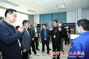 培训班在冯明的带领下,沿途参观了学校社团课、体育馆等活动场所,深入了解学生日常。在观摩实训中心群时,培训班成员在学校世界技能大赛原型制作和工业机械项目中国集训基地和上海选手培养基地驻足停留,听取介绍的同时观摩正在备赛师生的训练情况。在经过智能制造实训中心时,信息中心主任奚立川就中心建设进度、设备使用、前期试运行等相关情况向培训班学员进行介绍。在校企合作典型范例荣威4S店内进行参观时,学校金牌指导教练田凤霞正在带领学生紧张备战上海市“星光计划”第十届职业院校技能大赛“汽车营销”项目,田老师简要介绍了比赛的形式与规模,同时分享了在学生培养过程中校企合作的重要作用。